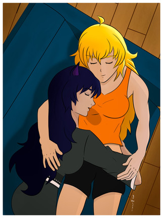 Is there a better way to get some rest after a long day of fighting grimm?Just a quick doodle of the lovely sisters, Ruby and Yang!
