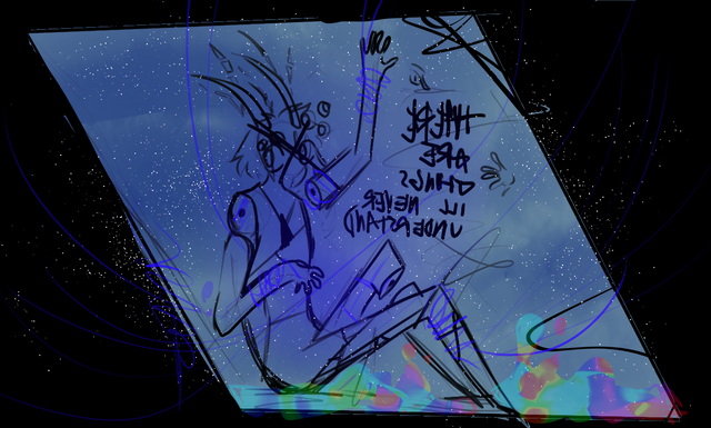 I am exploring a style. Inspired onΒ album covers from new wave and post punk artists/bands. I wanted to make a contrast between minimalism and chaotic expressionism.There isn't really a meaning or story behind what it is represented, it is totally up to you.