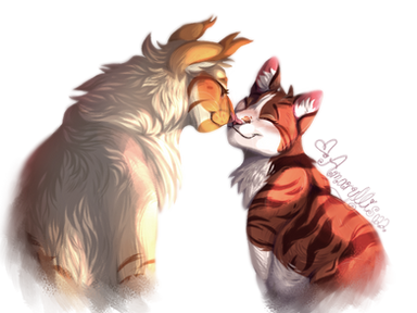 #cats #drawing #fanart #fireheart #firesand #firestar #heart #love #sandstorm #ship #tabbycat #thunderclan #warriors #warriorcats #art #abyssinian