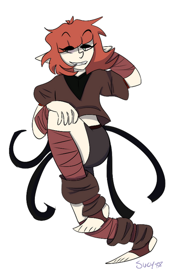 other: sucy dated ebony for a short while, before the two broke up, and after the relationship, she would flirt with everyone around her. she made a point to make sure they knew she was just doing it for fun. after harper got released from Herug, she grew very close to him. shes close with alot of the crew, but tarot isn't a big fan of her. sucy gets paranoid often, and has anxiety. she loves all her friends , and sometimes shes the reason any of them even become a couple.