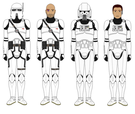 The Clone Trooper CT-4012, formerly designated NT-4012, also known as Sharp, because of his perception and sharp eyes thanks to Clone Captain Lock, who had once been part of the Breakout Squad fighting under Jedi Master Ring-Sol Ambase during a Mission to Kynachi during the Clone Wars, when he was later captured by the Confederacy of Independent Systems and impersonated by a Clawdite bounty hunter working for the Separatists. Later liberated he became part of the 58th Scorpion Division and was a proud member alongside fellow Clone Troopers who would all begin to have tattoo markings according to their Division Armor Colors and Marking patterns which not only gave them all much more individual faces besides different beards and hairstyles, but also conveyed their feeling of Brotherhood and Connection these Clone Troopers had towards one another and their 58th Scorpion Division. Inside the 58th Scorpion Division himself he quickly rose to become a Clone Captain and later a Clone Commander, who also would work as a Clone Cadet instructor, to make fellow Clone Troopers out of these Rookies and turn them into proper soldiers, who would manage to survive throughout the Clone Wars as his Brothers, whom he wished not only to survive, but one day become true free citizens of the Galactic Republic (and later the Galactic Empire) as he felt the Clones who had been breed specifically to fight for the Republic deserved at least that. While some Clones therefore rebelled against the Republic and Jedi, or even the later Empire, some outright switched sides, joining the Separatist Alliance, the Confederacy of Independent Systems, or the Rebel Alliance later on. Not so CT-4012/ NT-4012 or Sharp, who not only always believed the Clones had a loyalty to the Republic, just like it owed so much to them to not grant them freedom, citizenship and all liberties other Republic Citizens/ Imperial Citizens overall had and benefited from. Believing better life and change for the Clones could only come from within the Republic and itβs Army and Navy, Sharp did his best to create ideal conditions for Clones under his command wherever he could. At the same time Sharp was frightened, even when later on some Clone Veterans had their Inhibitor Chips removed and even had a few Kaminoans aid in limiting their accelerated growth and aging, so that the Clone Veterans would not die to quickly of old age.