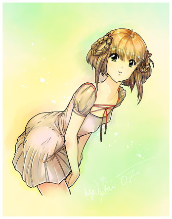 Awww, very cute. Reminds me a little of Shugo Chara. X3 I do adore the design of her dress. X3