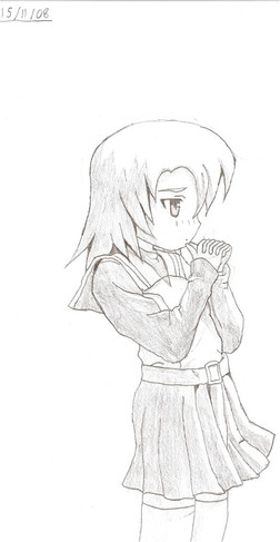 An anime girl holding a handbag ^^ This is a hand drawn traditional piece, no references were used. Editing software was used to clean up the background. I hope you like it! ^^Related content