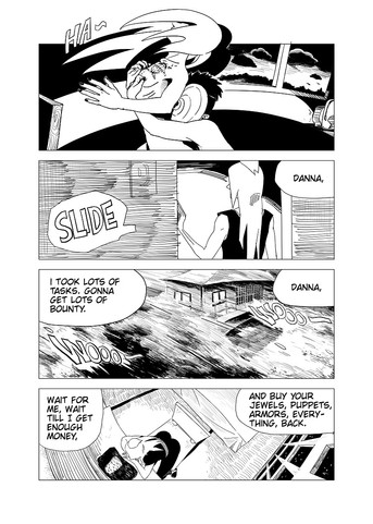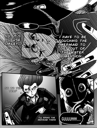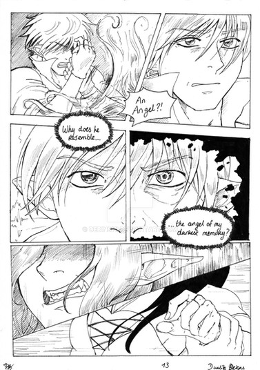 Inspiration for the "whisper" on the bottom left corner comes from Scott McCloud's The Sculptor, a seriously skillful and well narrated comic.