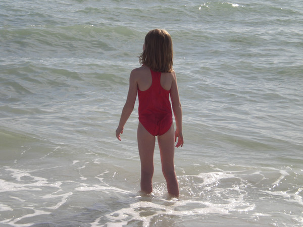 #backview #beach #child #girl #ocean #sea #splash #standing #stock #summer #waiting #water