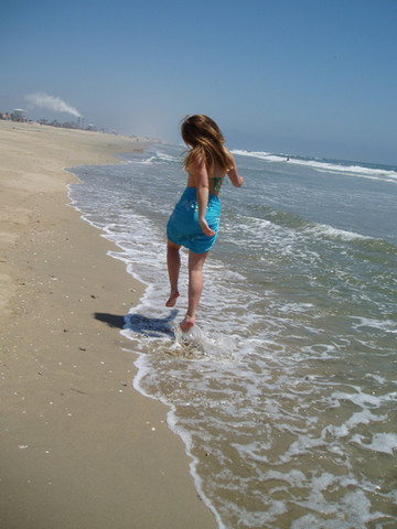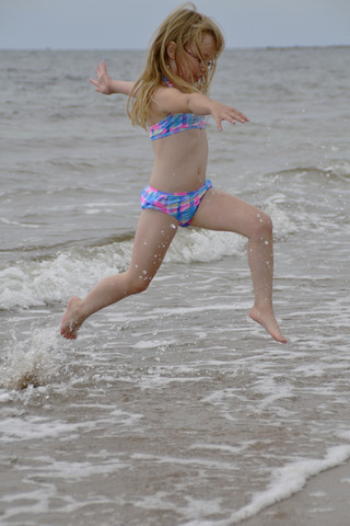 #beach #child #fun #girl #jump #ocean #playing #splash #stock #summertime #water