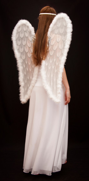 #angel #backview #child #dress #fantasy #female #girl #lookingup #pointing #princess #standing #stock #white #fullbodystock