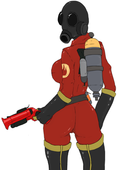 Maybe there's two Pyros. The one on Red and the one Blu. I think one is a chick and the other is a guy.