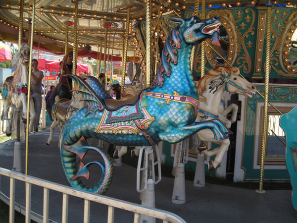 i love carousel animals! its so nice to see a carousel that has not got the standard circus horse theme. the 2004 tulsa state fair had a lovely carousel with this beautiful hippocampus, as well as some others that i simply did not have time to photograph. in the background, you may see a leaping cat with a fish caught in its jaws.Related content
