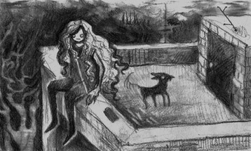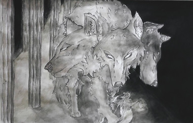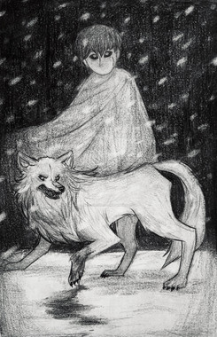 Ok, so I wanted to draw something cool while here at college, and my drawing class seems to want me to draw fifty billion boxes. So I decided to start my own project in my free time.I originally wasn't sure what to draw, and I was in the middle of rereading the mistborn series by Brandon Sanderson. So I drew a scene from Well of Ascension, the second book in the series. One of my favorite characters is TenSoon, a sort of shape shifter. He's the dog in the forground. I started by drawing him and sort of formed everything else around him.