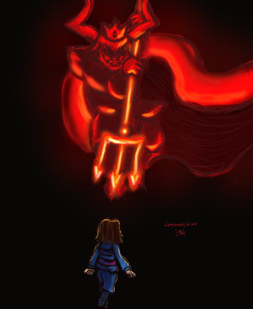 Lighting was a bit of a challenge for me again. I dunno, lighting is one of those things that I don't have a problem with in traditional art, but it seems the moment I try to enter photoshop, I have to reprogram my brain in order to get things to look right. I originally was just going to highlight him in white like I usually do, but although that lighting works in places like snowdin, it looked really out of place in hotland where Sans' hotdog stand is located. The result is that sans looks a bit more orangey than I had originally anticipated, but it's a learning process.