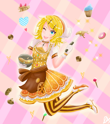 #fanart #digitalart #cutekawaii #anime #baker #birthdaycake #birthdaygift #blonde #bow #cake #chef #cupcake #cute #cuteanimegirl #girl #pastel #pink #rin #vocaloid #shorthairgirl #bakergirl #kagamine #kagaminerin #kagamine_rin #vocaloidfanart #winkinggirl #heart_pupils #cake_batter