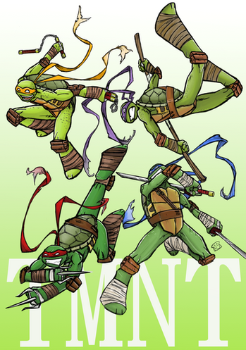 Damn, Raph's sai look chunky/big as shell and Mikey's Nunchuk's pretty long, too...