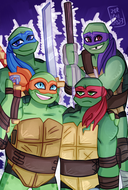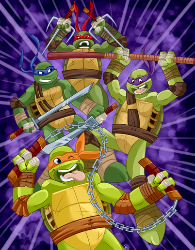 Love how everyone's all hard looking but Mikey's got that big ol' dumb Mikey grin.