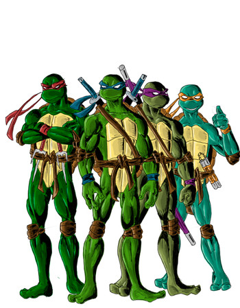 They all look even more awesome being all together! Yeah! COWABUNGA!