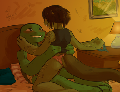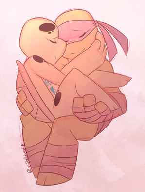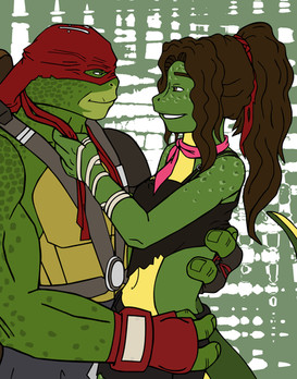 I decided to give this another go after one of my friends, Apathetic-Peach ! She redrew one of my pictures, and it was so SWEEEET.SO I had to return the favor with her version of Mona with Raph!