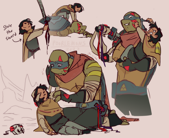 I miss drawing my ocs! So I did a quick warm up doodle with my albino turtle baby Abi with her favorite Uncle~! ♡´・ᴗ・`♡