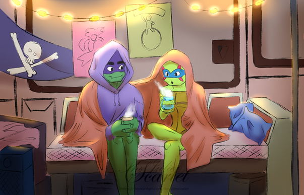 I was commissioned by @ask-am to draw their oc with Donnie having a nice winter day at the farmhouse together! It was really fun painting this! Thanks so much for the support!Please do not use this for personal use, edit or repost!