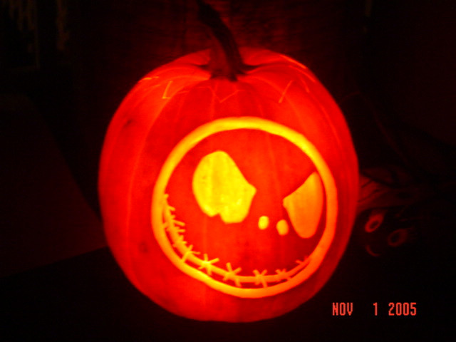 this is a photo of a pumpkin i carved last halloween. it's jack the pumpkin king from tim burtons nightmare before chritsmas.Related content