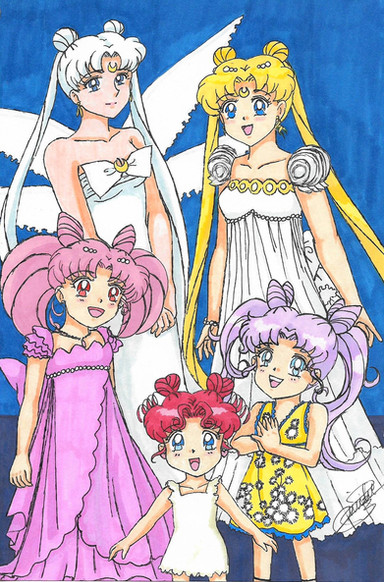 this was just for fun really. i thought, hey lets turn sailor moon goth/punk. it turned out pretty good i think.the background is just a bit of old wrapping paper.