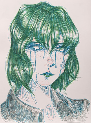 So I came to the realization that the reason I hate giorno is bc he’s a dude and that I’d have eaten him up if he was a girl. Therefore I like to draw giorno as a girl bc why not yk? This is meant to be her before her stand became a thing lolDoodled on my biochem notes