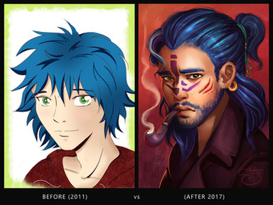 I wanted to try another "Before and After" piece over the weekend. The original from 2011 is rather boring so I made sure to make the newer version more interesting and quirky.Update on the RPG project - game is progressing nicely! The last few months have been hectic but we're getting there. So while we wait - please enjoy some weekend paintings