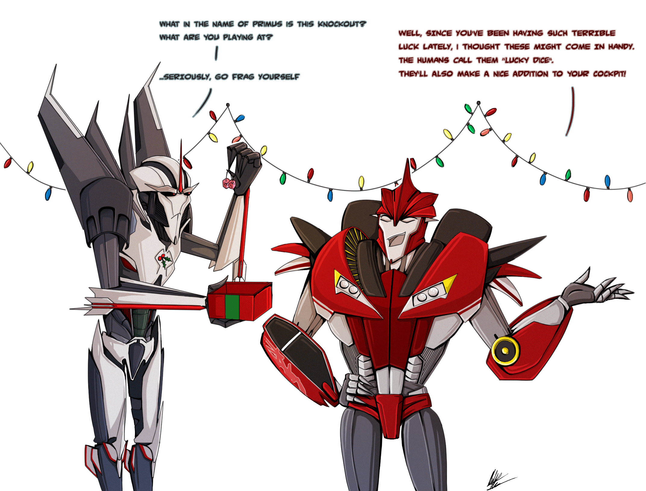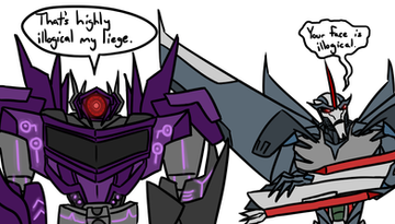 Me: *Grumble* Don't tell me that you two made another experiment! *Looks at Starscream & Knockout*