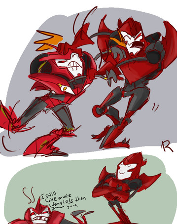 I have way too much fun drawing Starscream and Knockout doing shenanigans together cause everyone knows that Starscream and Knockout shenanigans are the best shenanigans.