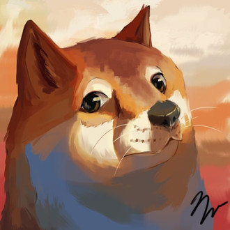 your digital painting is very nice in this one, and the shibe + memeing is 10/10! very cute doggo <3