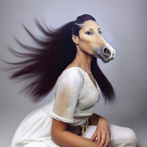 Hmm, I'm not sure. What I did was select the nose, and place it where i thought it belonged. Then u created a new layer underneath and selected her skin color, and painted on top her nose and mouth to connect the horses snout to her face. Then i set the opacity of the horse snout very low, and copied the shading on the skin layer using burn and Dodge.