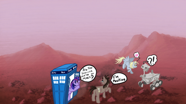 next derpy was carrying a box of techno parts and tripped. the result was a interdemensional tele porter