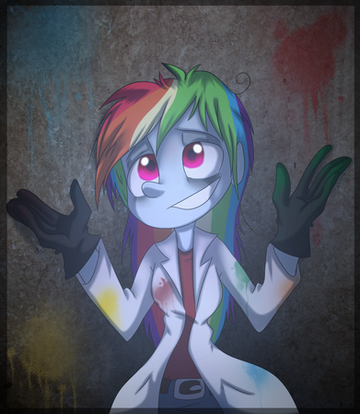 This provided a deal of inspiration for a Rainbow "Factory" Dash cosplay I did this summer. It earned me an award at the con, and then on Halloween I won the office costume contest. :3