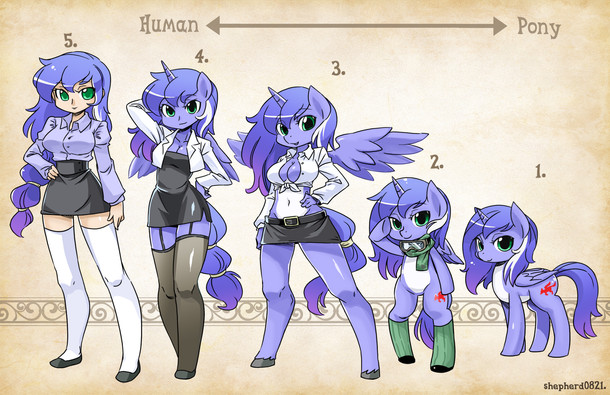 What about Half-Anthropomorphic? As in - Human (no hooves, hands, etc.) with pony ears, horn, wings/whatever?