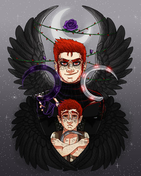 Wanted to do something with red highlights. Realised it didn't look half as good as I'd hoped. Decided to try a different lighting angle. Realised I had no idea what I was doing. Closed eyes? Nah. Closed eyes with make up? Hell no. So all in all... I half-arsed it ;DDekker and his BFF sickle, since I like using it as a symbol of sorts. Only thing is that it's not easy to incorporate in my usual generic portraits, and I know I've had a sketch of Dek's face and the sickle for a couple of months that I'd just open occasionally, spin the sickle about and see where it'd look ok, then give up >.> But this will do.