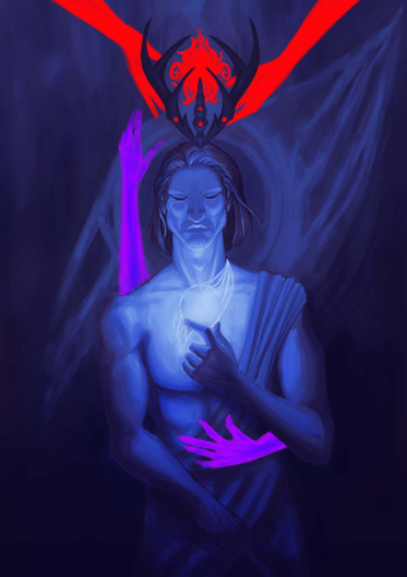 #assassin #closedeyes #dekker #dnd #dungeonsanddragons #face #halfling #hand #male #man #oc #originalcharacter #rogue #rpg #scar #sickle #sheppard56 #blackandwhite #magic #portrait #red