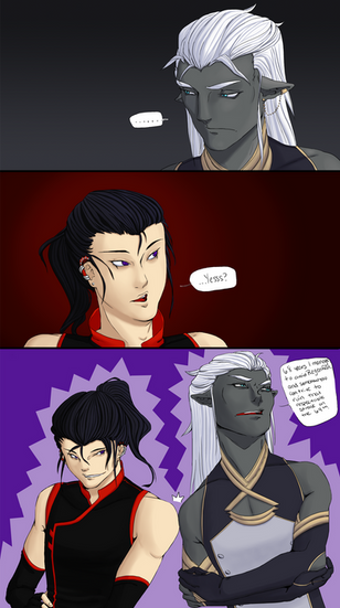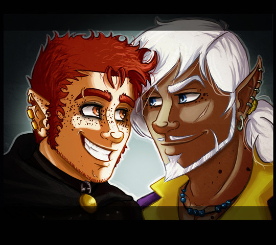 Aka what happens when the pansexual wants to get back at the asexual ;D Also helps that Zeke barely has any concept of shame ;3Zeke has to put up with Dekker acting like a pestering three year old most of the time so he's learnt ways to shut him down quickly ;3 That said, there's nothing more than a crazy BFF relationship here - Zeke may go for anything and anyone, but not Dekker, if not because they're friends but also because he knows what he's like. Also, I think Zeke would draw his own personal line of 'anything' when it comes to Dekker xD The crazy Irish halfling isn't really his cup of tea, not when he's most likely dirty, scruffy and would totally put a mark on his reputation ;3
