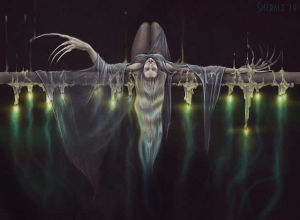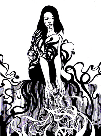 #dark #woman #blackandwhite #fantastic #lovecraftian #monster #nudenaked