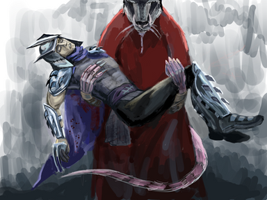 The thought of Raph as Shredder and Leo as his bodyguard didn't let go of me so I created more around this scenario.