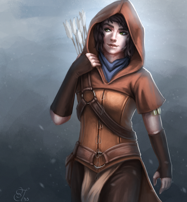 Beautiful work! The design of her outfit is simply excellent: you've created something that's both practical and looks really attractive on her, and your strong, effective use of colour makes the entire pic just pop. Well done!