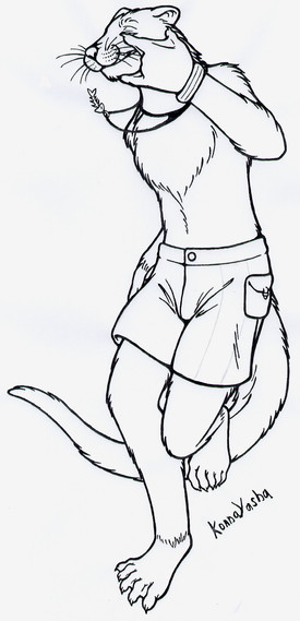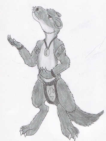 I'm obsessed with these guys. My take on what a Selonian would look like, just based on descriptions. Their 'official' look is drastically different. But this is what a Selonian looks like in my mind, sort of a cross between an otter and a ferret (but with a pointier head). I could get really technical and tell you about the webbing between her toes and using her tail as a counterbalance and using Ky and Goldie's notes on quadrupeds evolving into bipeds and Selonians being able to go on all fours just as on two legs and whatnot. INSTEAD i'll just give you a description.Sarrasska is an albino Selonian, rejected by her den because of her albinism (Selonians don't NEED to reject the young, but as a group primarily concerned with the well-being of the den, its instinct to do so.) She was raised by humans on Corellia, and taught the ways of Selonians that come above ground (these are specially trained to deal with humans, and do not behave as they would with others of their kind, they are made to make humans feel comfortable with them.) So you can see why Rrasska would be so confused about Selonian behavior and body language, and why they are so aggressive toward her. She still has the 'Den instinct", however, and many other instincts that come naturally to a Selonian. However, she seems to be the only one of her kind that has the ability to lie. Her upbringing in the seedier parts of Corellia contributes to this.
