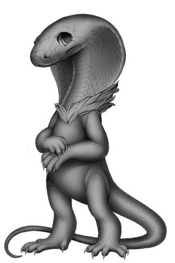 I like your character, but what I believe is more interesting is how to capture her expressions, like anger, grief, joy or pleasure. The Selonians, particulary the ones of KOTOR are more static and are expressionless. Is more easy to understand their emotions through their arms, mouths and body moviments, otherwise is difficult to understand what a Selonian is really expressing at the moment.