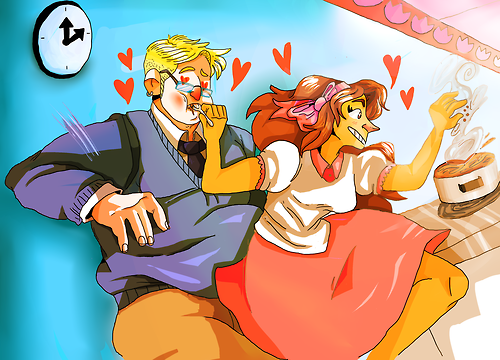 I really love this whole series waaaaaay too much and I wish this couple was featured in the cartoon series (hence why I ALSO used some of the cartoon series color schemes instead of the show. its also more pleasing to the eye imo. ) plus some references to one of my fav episodes of the Netflix series, cause why not. WOOP. sorry if the writings hard to see I wasn't thinking when I did it . I also decided to kinda inject some of my own style into the cu style because apparently i cant really do it perfectly ( like seriously props to the people who animate these characters like...i feel like its harder to figure out movement and such with these simple shapes than anything) but ! I like how they look anywaysRelated content