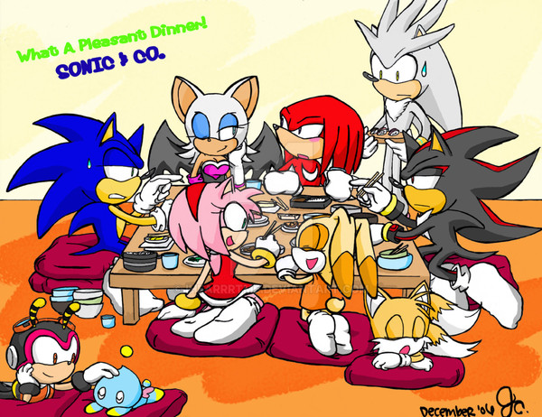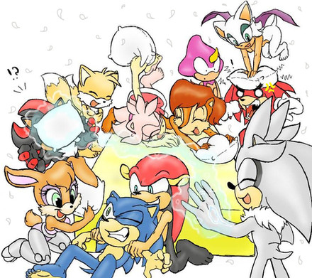 Looks like they're all having a grand old time. Of course, Amy looks for any excuse to tickle Sonic into submission.