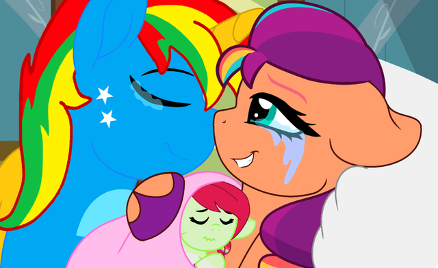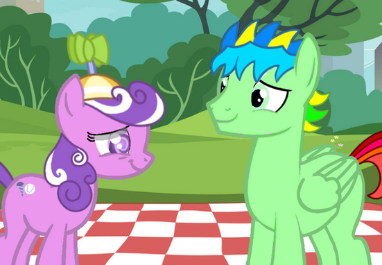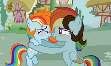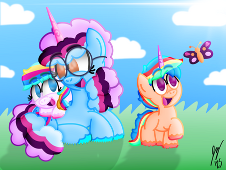 Drawn by my kind friendShield Wing and Lighting Chaser can now see that their daughters Starling Shield and Candy Apple have become the best of friends.