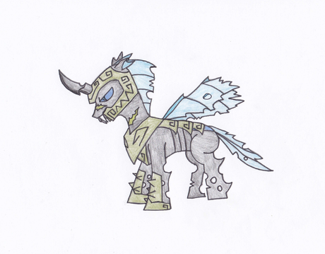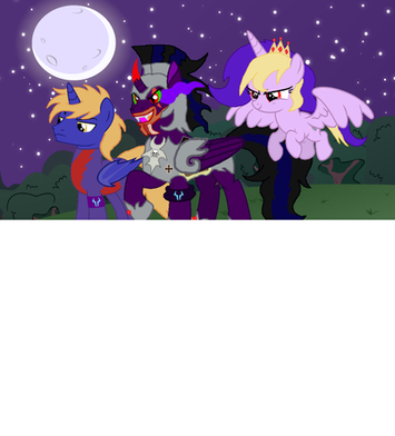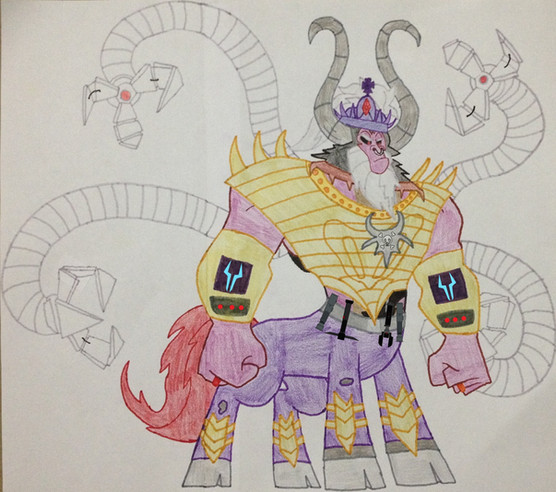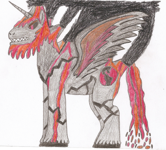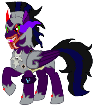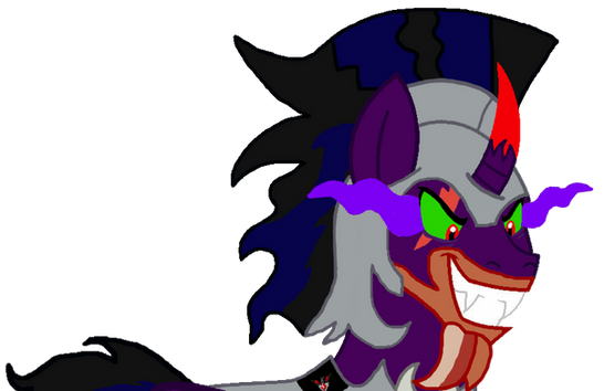 When he was 14 years old he was brought in by his new master called King Destroyer who took him in as his new apprentice so they can plan to rule the entire world together and make everypony and every creature bow to their knees after 3 years of training and going on missions to destroy everything as his master tell him to do and kill anyone who gets in his way King Destroyer announces to his people at the Grand Hall next to his palace in Dark Unfriendship City he gave him a new horn in front of more then 100,000 ponies and creatures and that is how he have become the very evil alicorn as he is today.