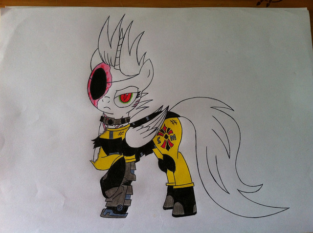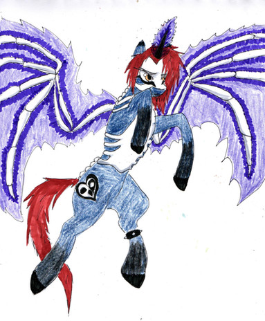 And finally underneath his armour he has a cutie mark of a skull and crossbones he got that just after he was expelled from the Ponyville Schoolhouse after he beat up one of shield wing's friends and that pony he beat up was the one and only Applejack and soon after he was expelled from school he decided to plot his revenge on applejack and destroy Shield Wing who have betray him.
