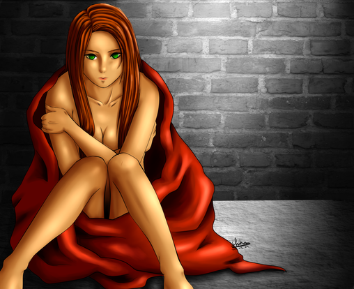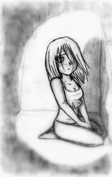 I like how well her pose matches her facial expression. Also something about the way you drew it conveys a sense of movement..as if she's rocking back and forth (in my eyes). I'd be curious to see the finished piece if you ever got around to it.