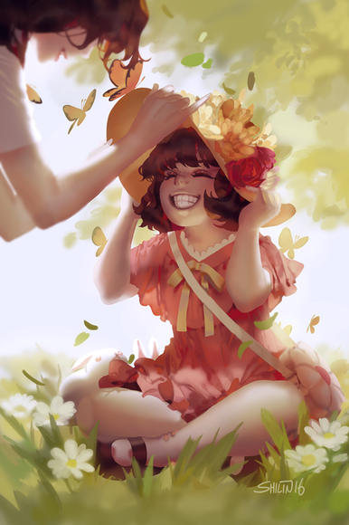 whoaa...it's so beautiful! I really love the flowers and the way you draw the sky and the moon.