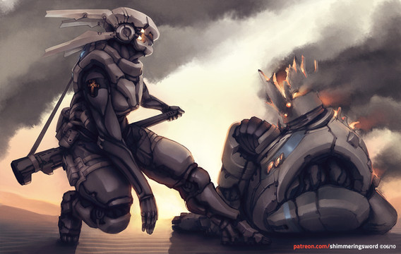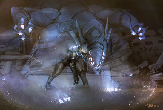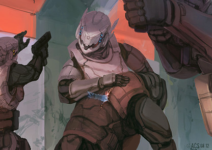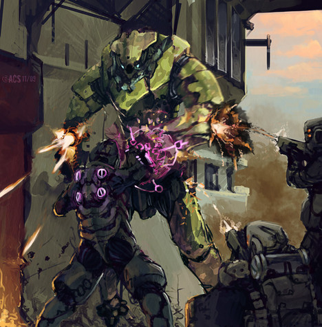 if you do end up re-visiting this, cleaning up the lines or colors, i think the overall visual of it could be improved. love the ships and as always the power armor