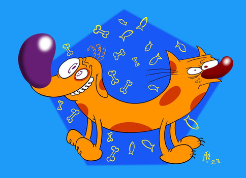 Edit: This was drawn from scratch by me. I did use a reference picture of CatDog from Google Images though. GIMP screwed me up that day when I was coloring it, so I had a horrible time getting the background in.